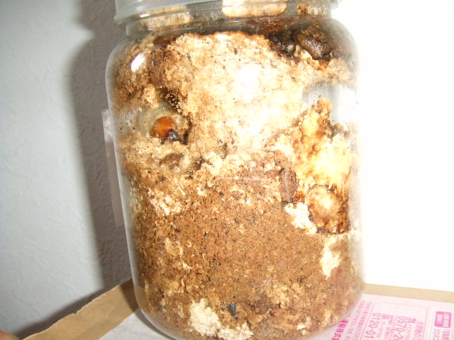 フッカフカ状態になるまで移動しまくって崩されていたカワラ菌糸飼育のボトルが目につきました。