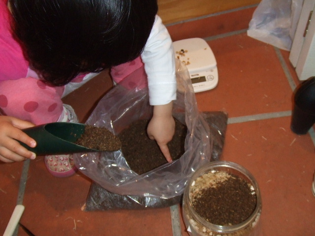 ↓ そして穴に突っ込む幼虫の体重を確認~