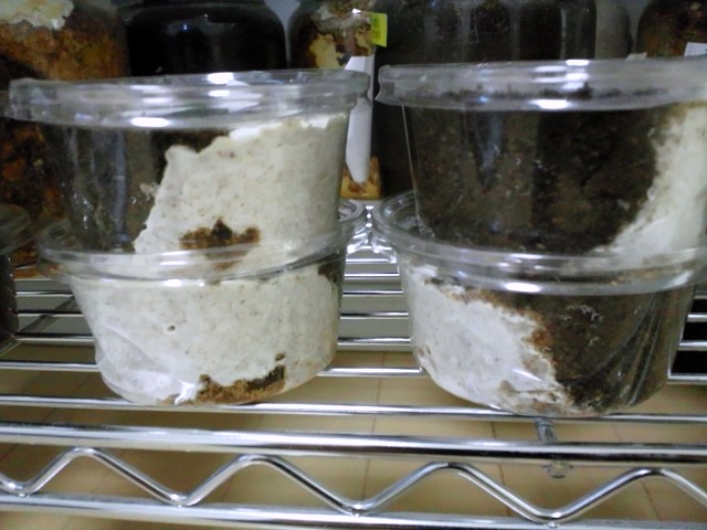 あとは、このまま食い上がってくるくらいまで放置です。それまでにはボトルに詰め込んだ菌糸も落ち着いてくれることでしょう。特にカワラ菌は詰め作業してからしばらく寝かせないと不安があるものでして><