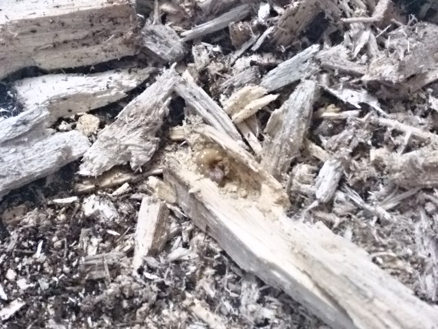 ↓ 上の材から出てきた幼虫。。