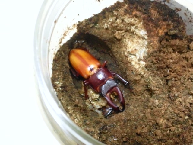 こちらで紹介したときのものですが、羽化してるものだと思って雑にボトルの掘り出しをしていたら・・・ちっちゃい♂蛹が出てきたという(^_^;)