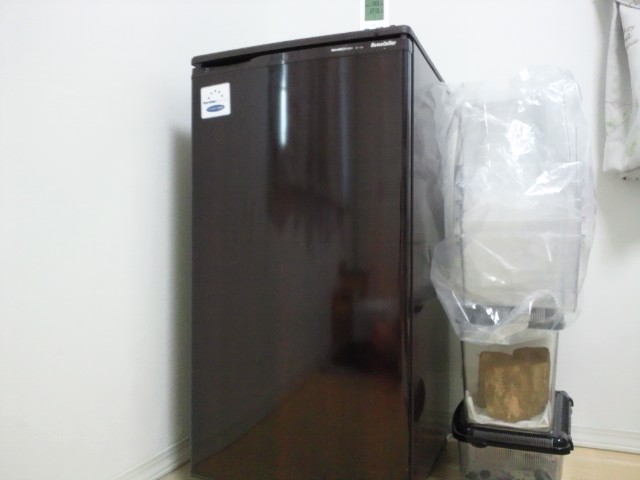 こちらはダイヤル式の温度調整で、デジタル式の温度センサーを庫内に設置して最弱運転で19~20℃を確認。