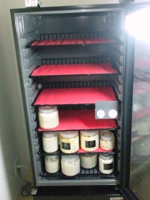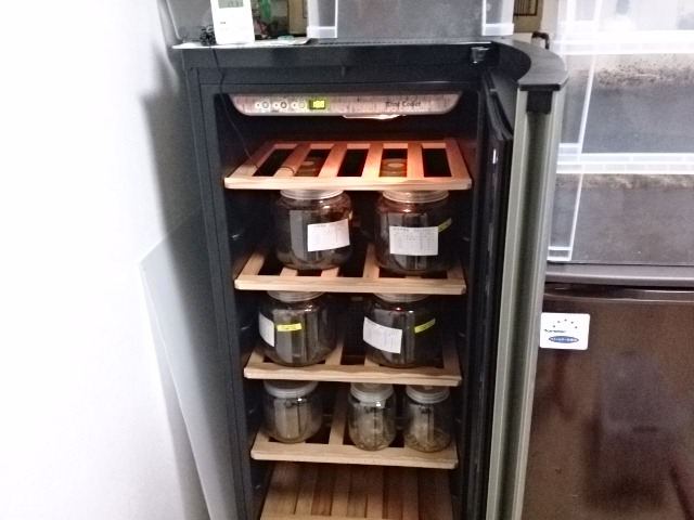 こんにちは。追加導入したワインセラーを通電してみて異状がないようだったので1部ですが菌糸ボトルを入れてみました。