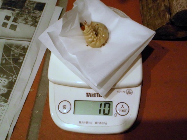 ↓ そして見た目は小さいけどもせっかくなので体重を確認です。ちっさ。。これから食べることはないでしょうし、蛹室を作成するにあたってさらに体重は減るコトでしょう。