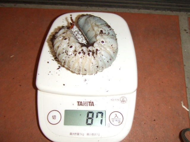 この幼虫とは直接関係ないけど、これは今出品してるエクアトリアヌスWF4の兄弟幼虫で、だんだんと大きくなってきてるようです♪