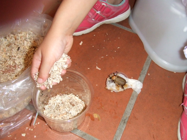とりあえずすみっこにエサを置いてみました^^