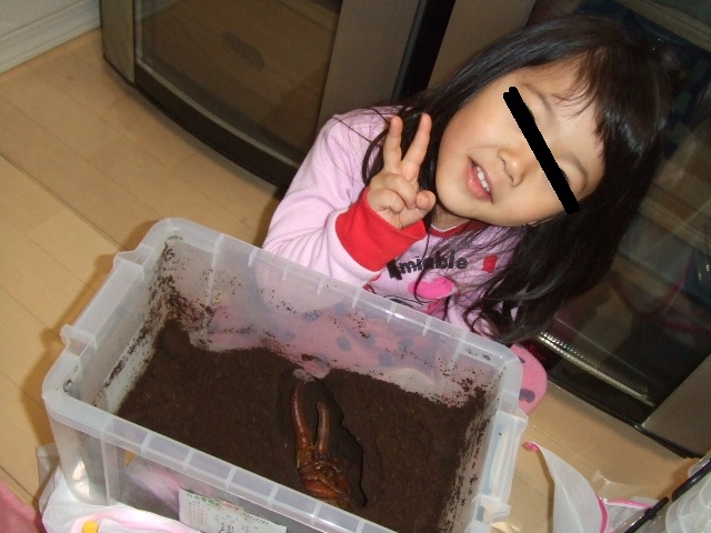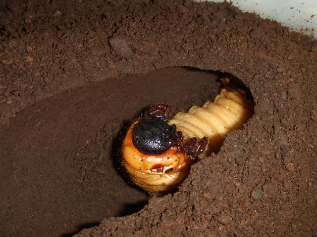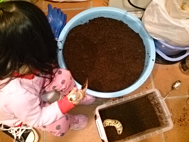 マットの固まったところを丁寧に掘っていったら、これはまだ蛹にはなっていなかったようですね・・・