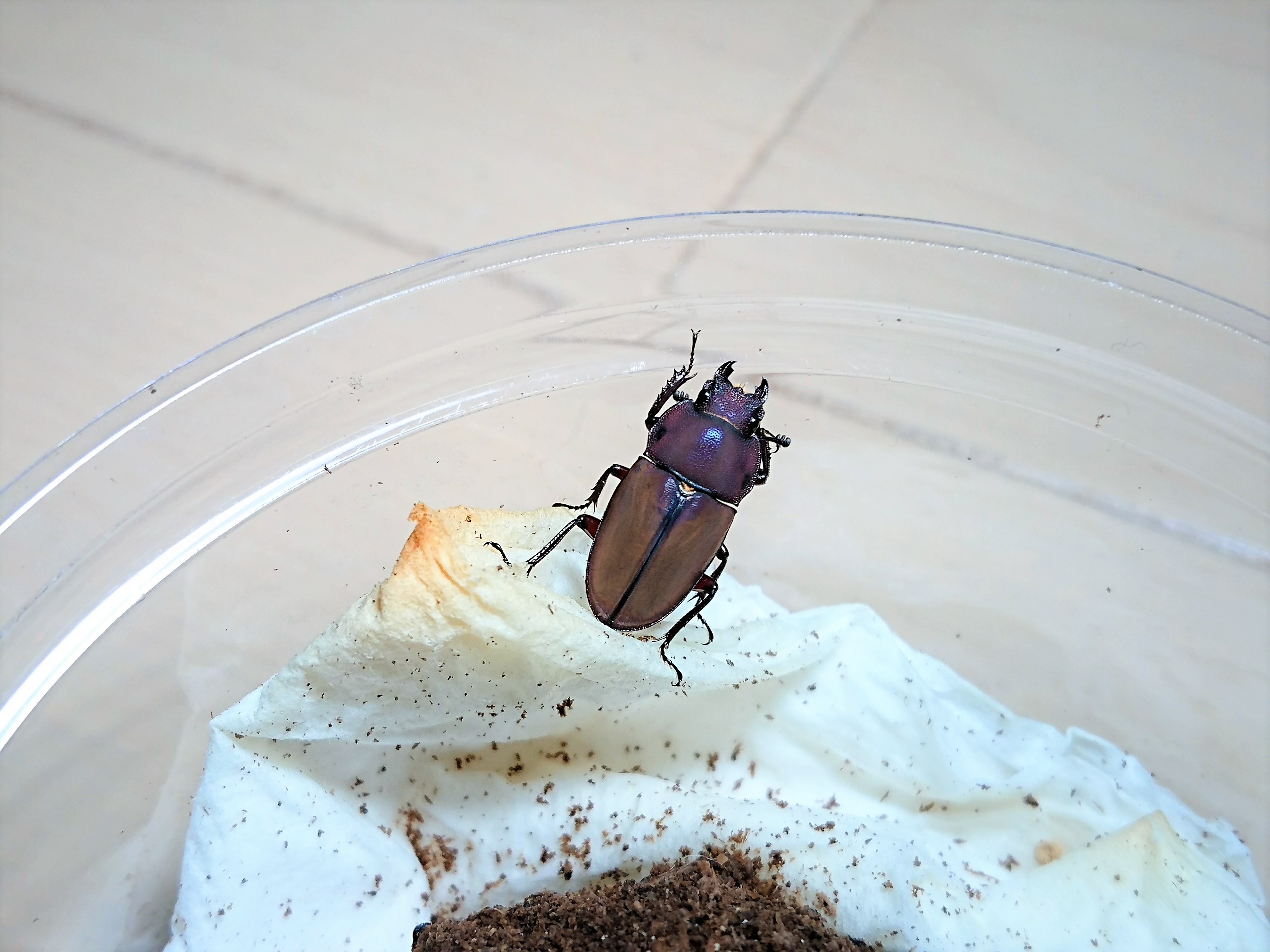 幼虫の初令から交換なしで放置していたフェモラトゥスホソクワガタが成虫としてその姿を見せてくれました^^