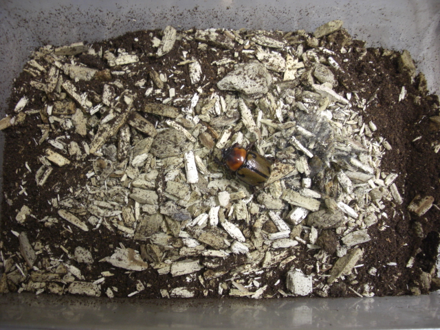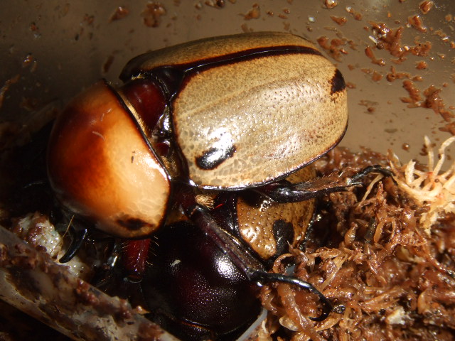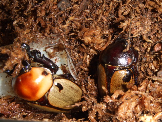 まだ雌雄とも元気で産卵セットにいるヨツボシヒナカブト^^