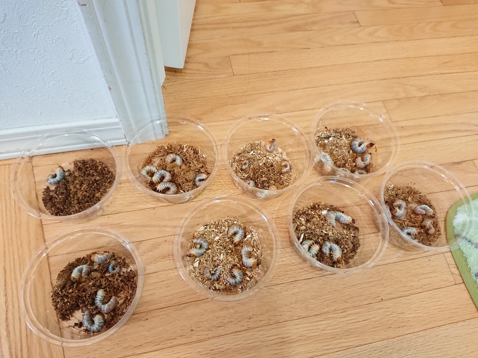 まずは3令になってきたサタンオオカブト幼虫を個別に分けながらの雌雄判別。