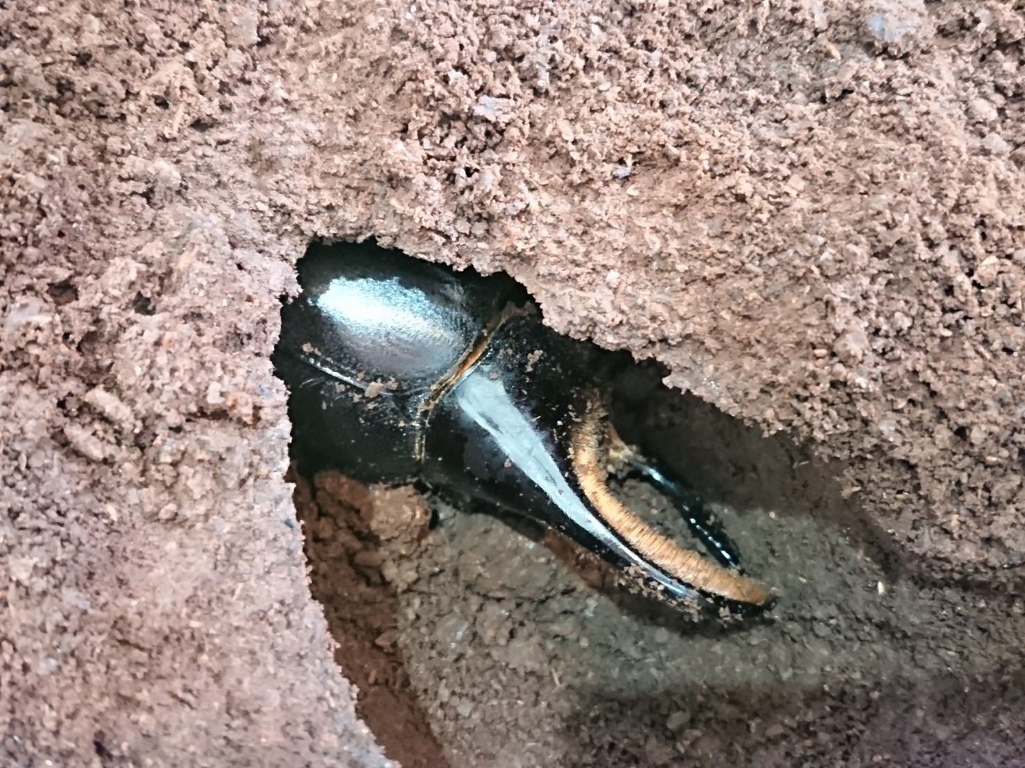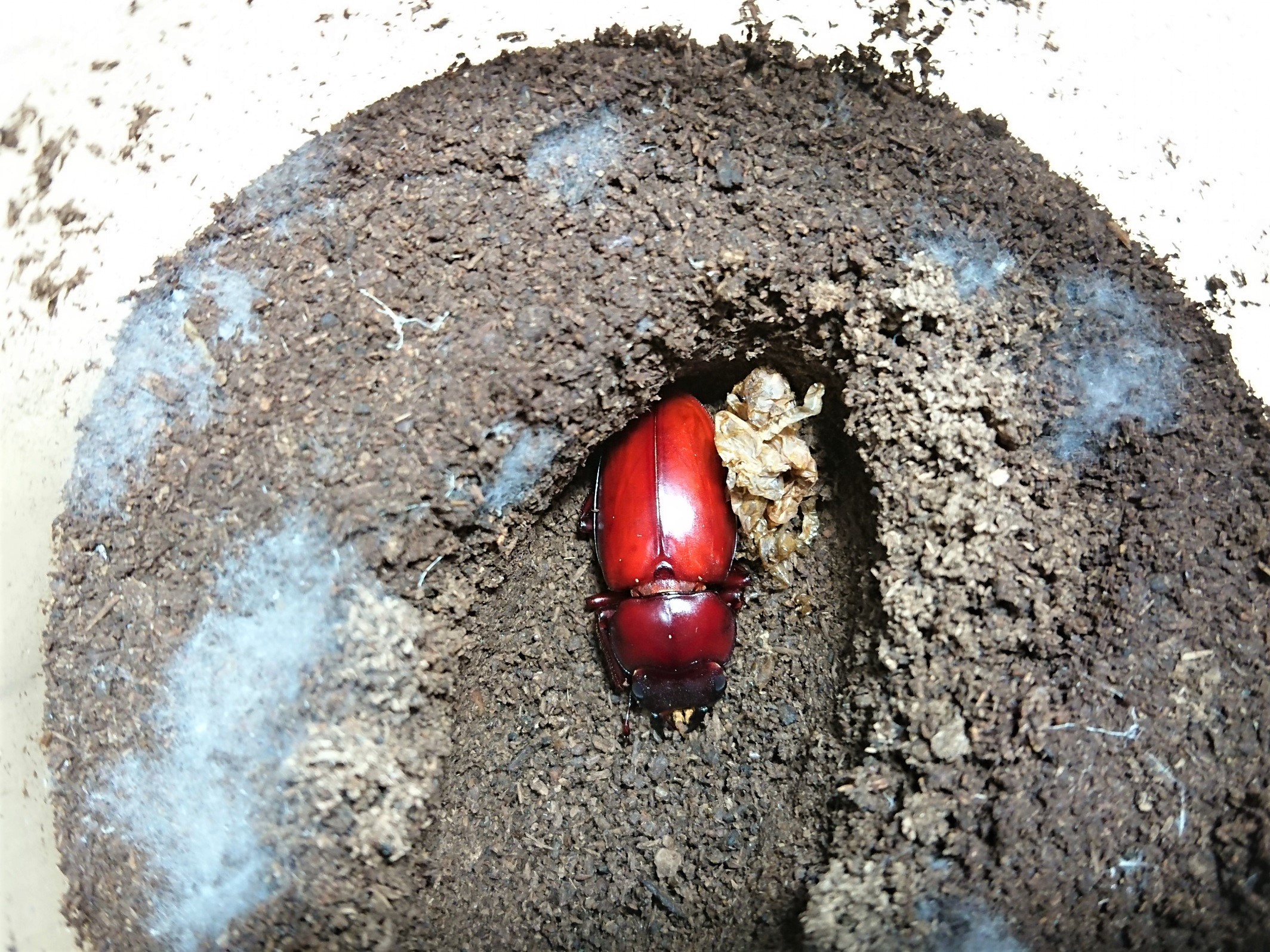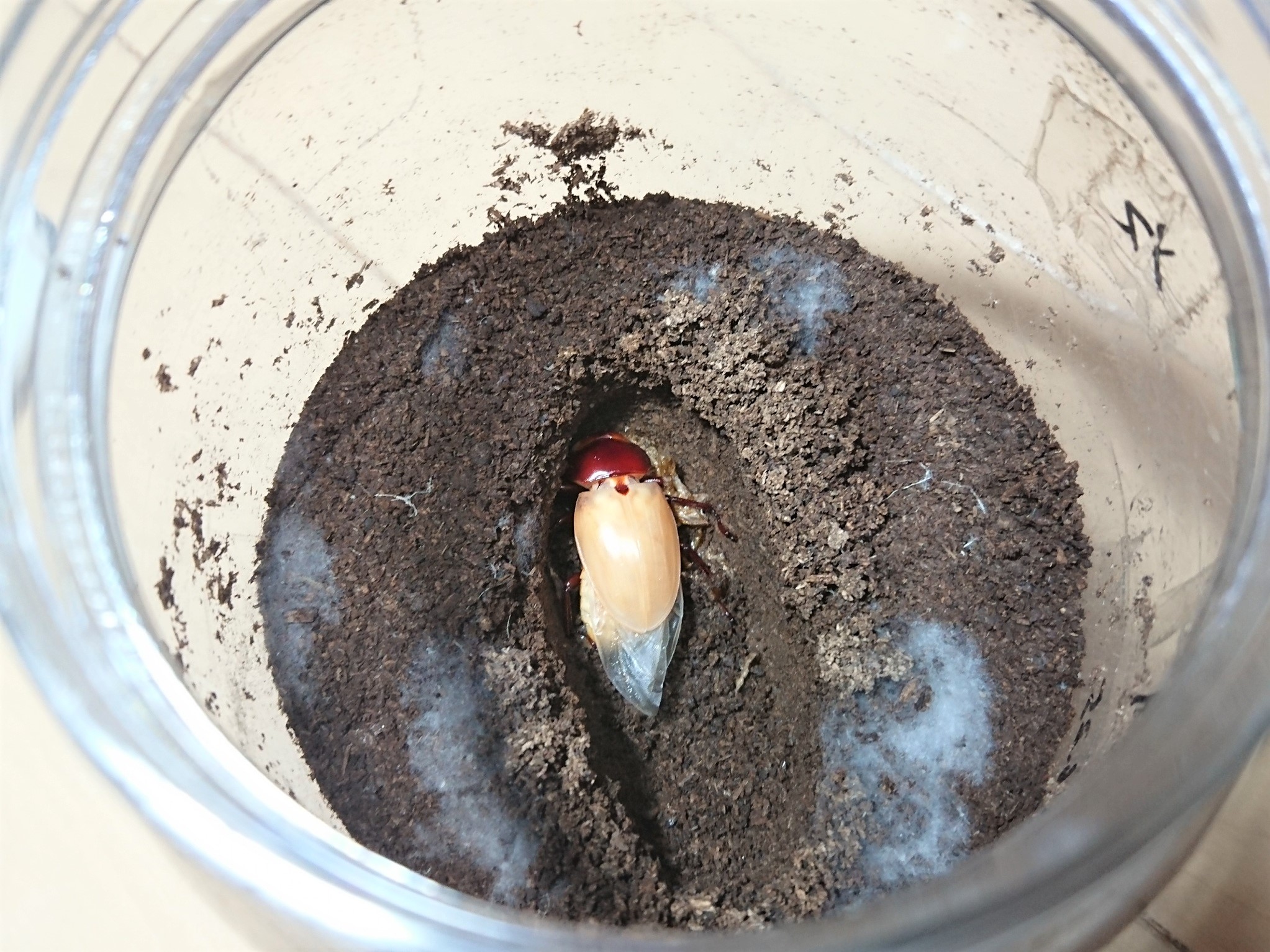 2019年末に羽化していたサタンのオスですが、休眠してるままで6月になってるというのにまだ表面に出てこないので心配になって掘ってみました。