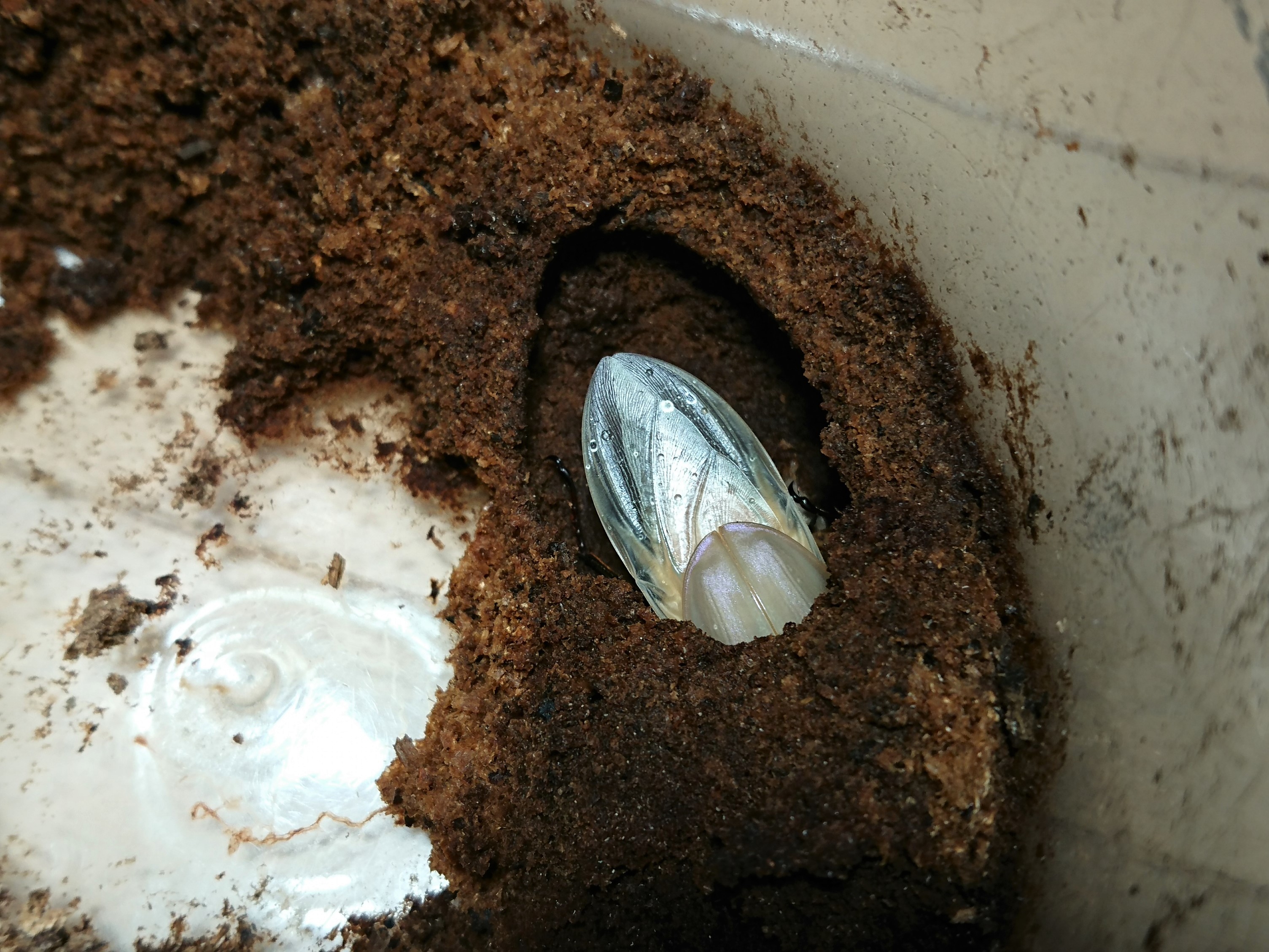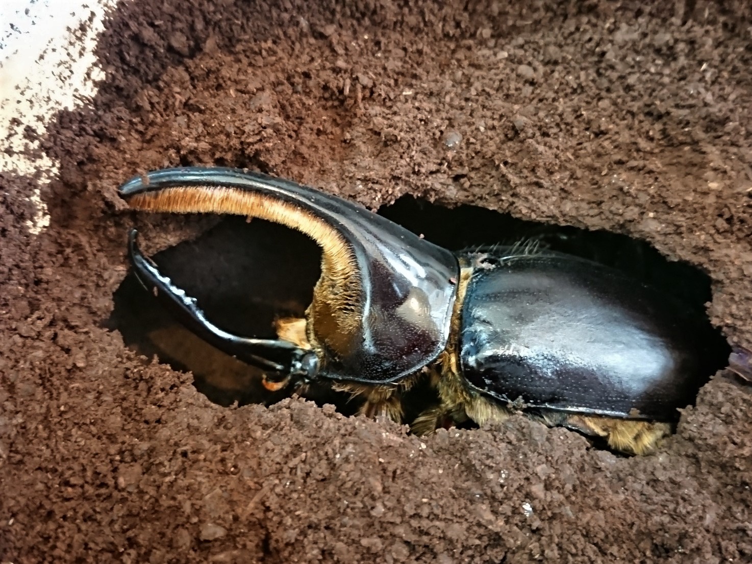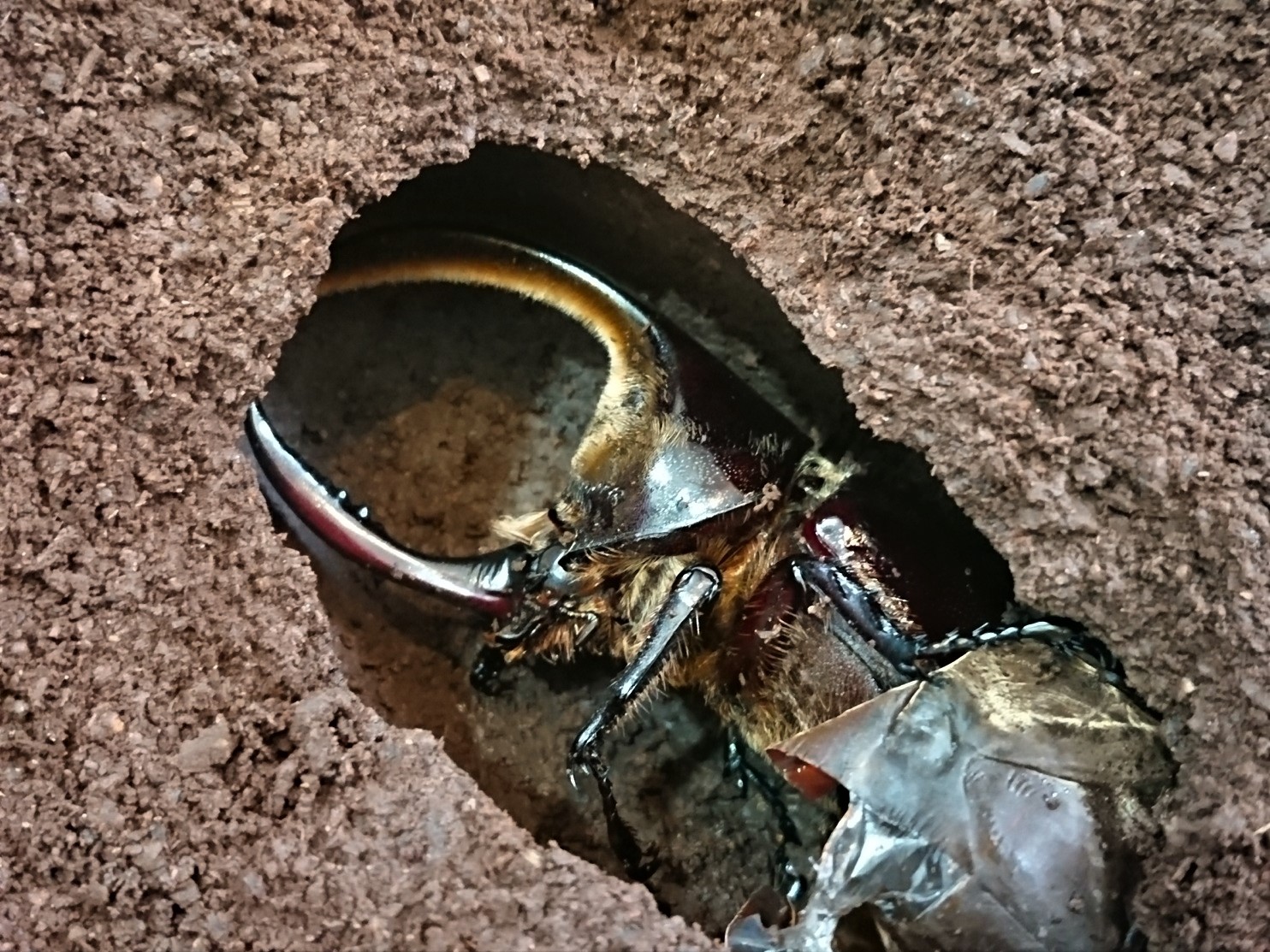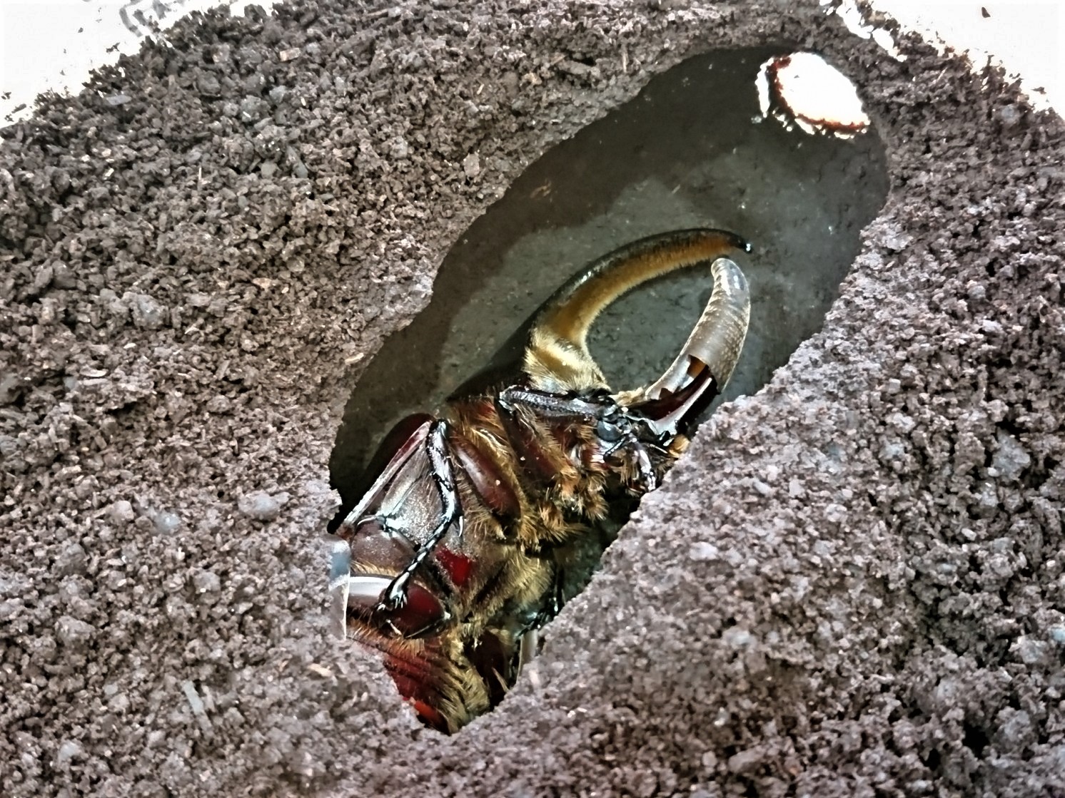 2019年末に羽化していたサタンのオスですが、休眠してるままで6月になってるというのにまだ表面に出てこないので心配になって掘ってみました。