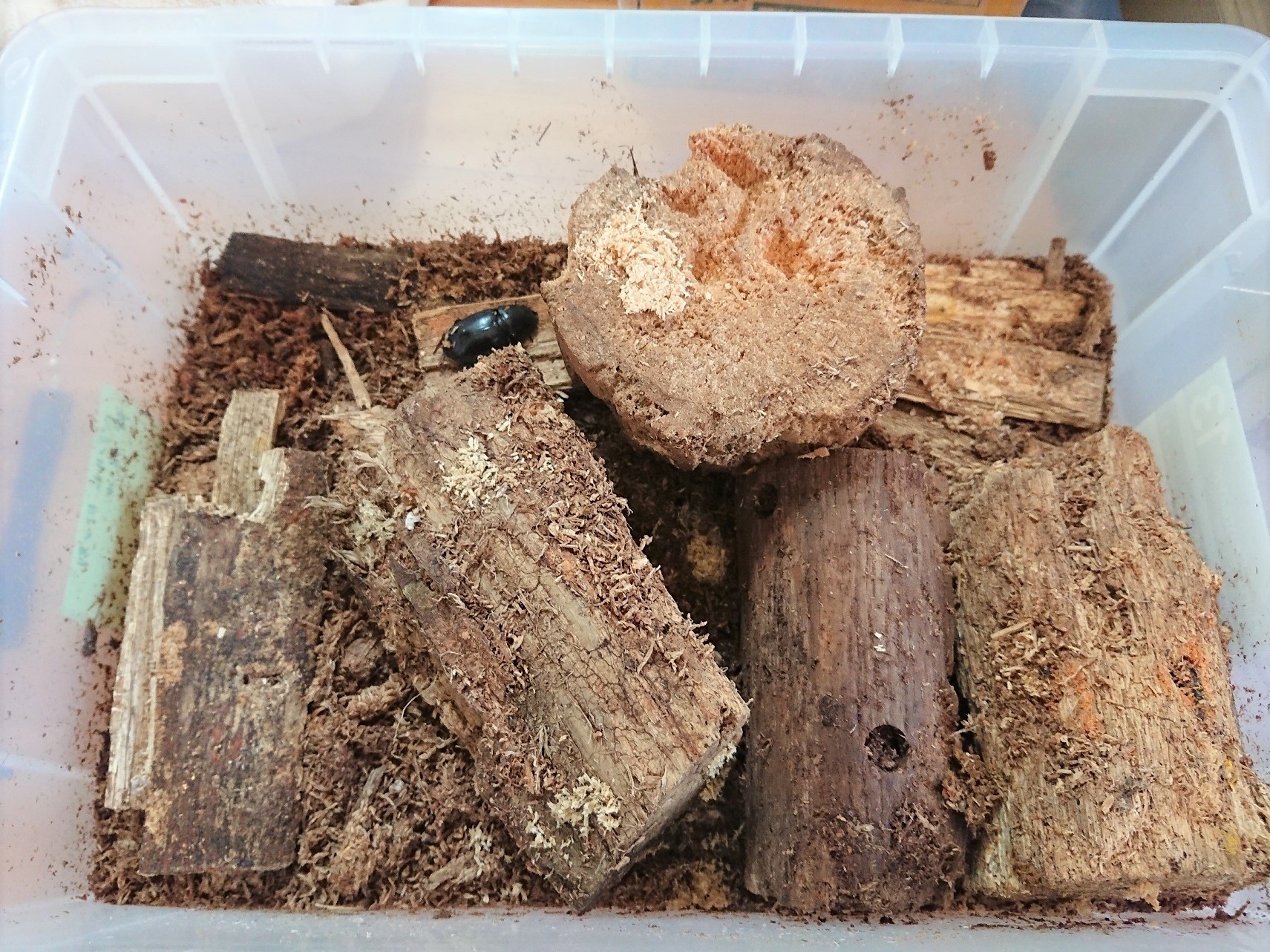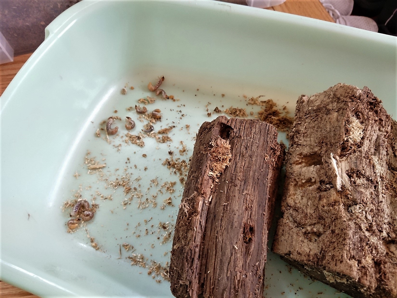 2019年秋に孵化してる幼虫がだいぶ大きくなり、菌糸部分もだいぶ劣化してきてるので交換作業することにしました。