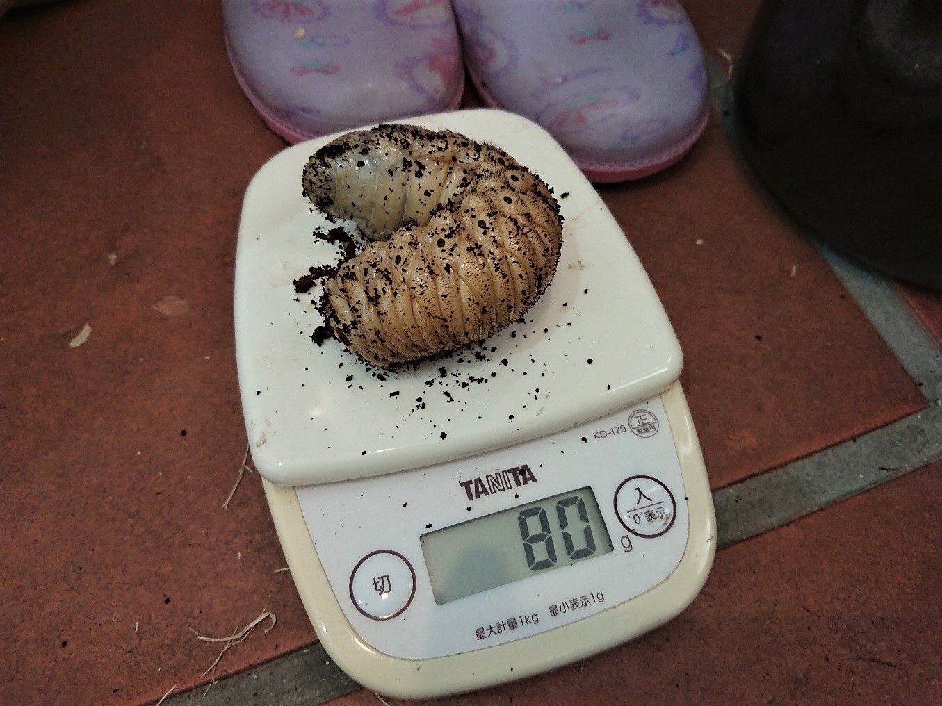この休み期間に片付けようと放置していたのですが、ん?端材をよけてみたら幼虫がいました!