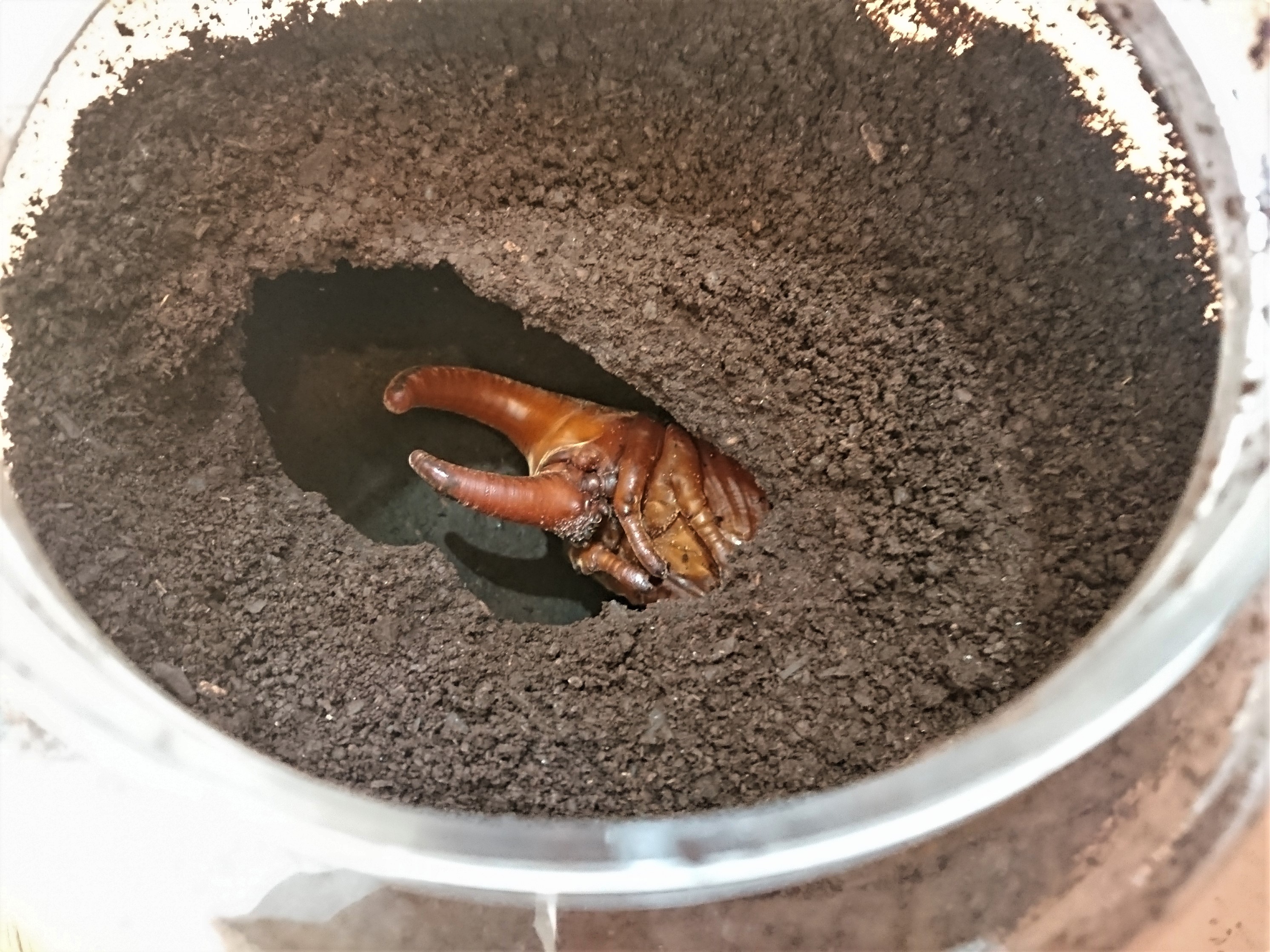 小窓が見えてるボトルがあったので、注意しながら掘ってみると蛹がいました。