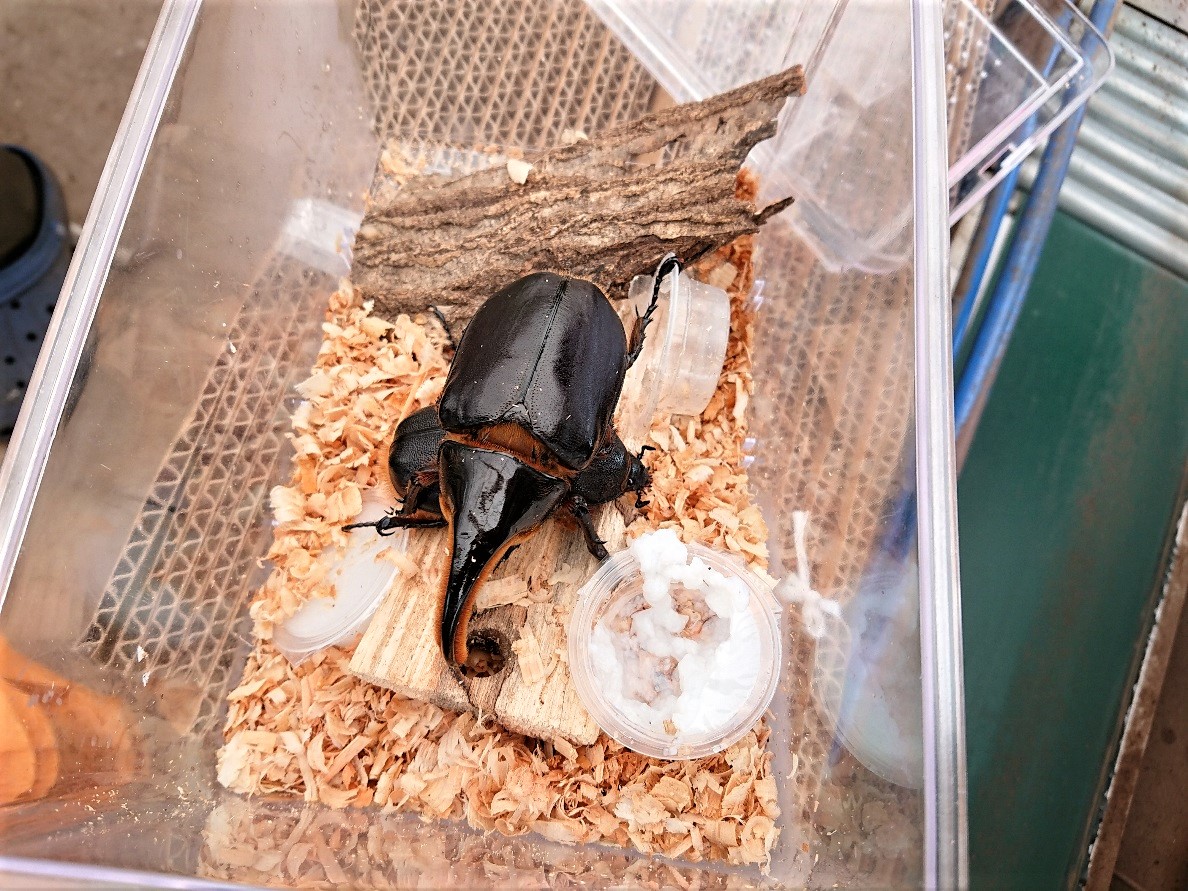 やろうやろうと思っていても、多忙と気疲れで実行できずにいたサタンオオカブトのマット交換。