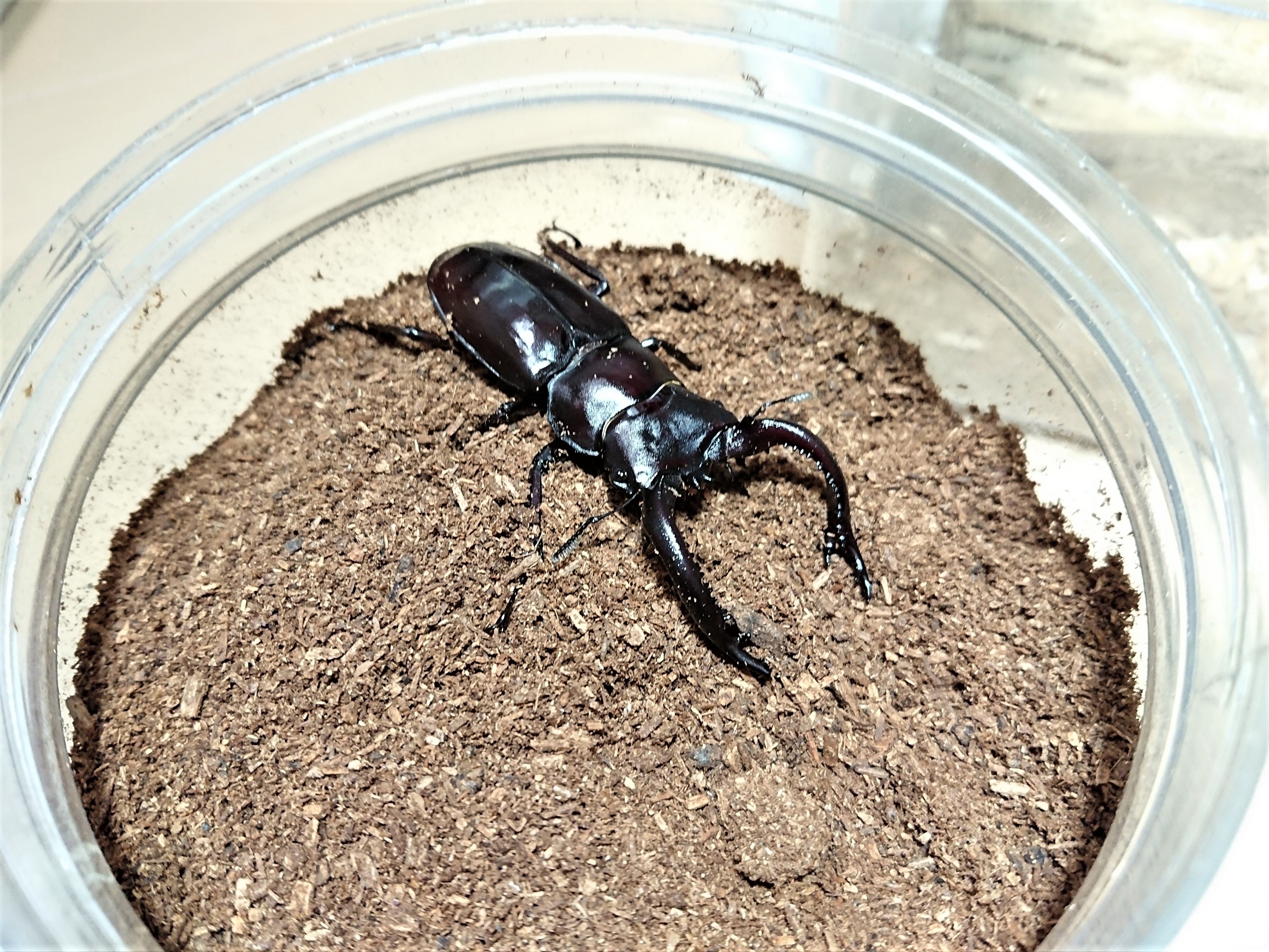 小学校3年になった二女が「クワガタがフタについてるよ?」と言ってきたので、確認したら休眠していたはずのキヨタミが表面に出てきたようです。