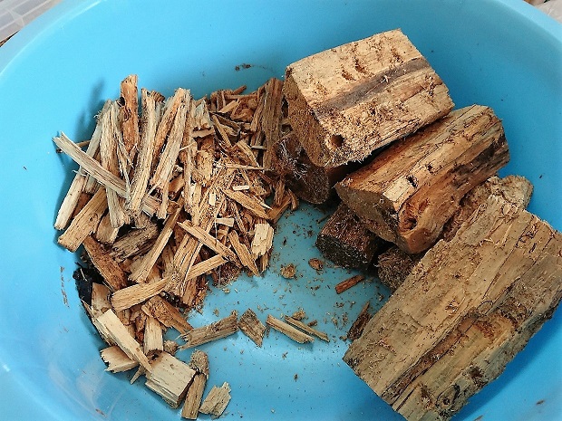 ナラ材のほうは手で簡単に割いていくことができましたが、天然材のほうは硬くて道具を使って割りました。
