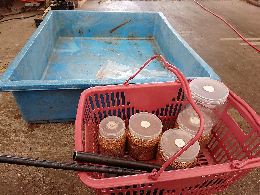 そして先ほどまでいつものマット工場にお邪魔して、マット仕入れとカワラ菌糸を詰めてきました~~