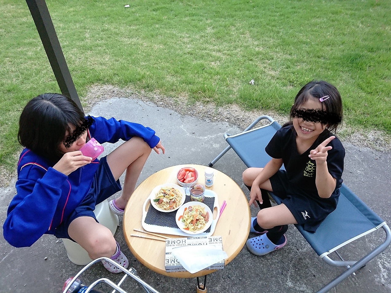 本日は昨日までの猛暑じみた暑さはなくて、過ごしやすい日ということもあり、娘たちが気が向いたようで外で食事してみたいと言い出したから、こんな感じにしてもらいました^^