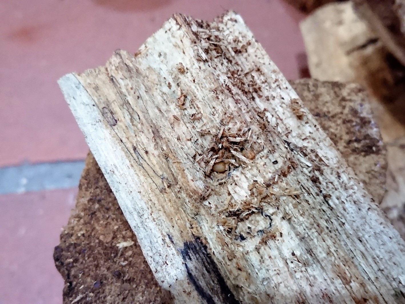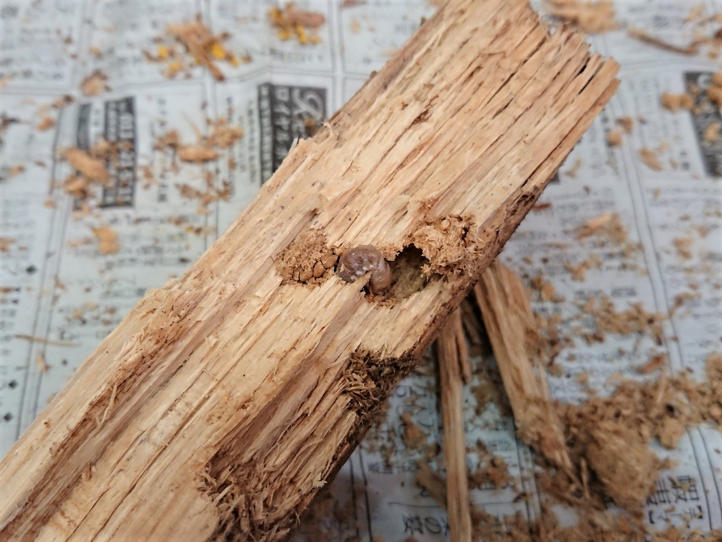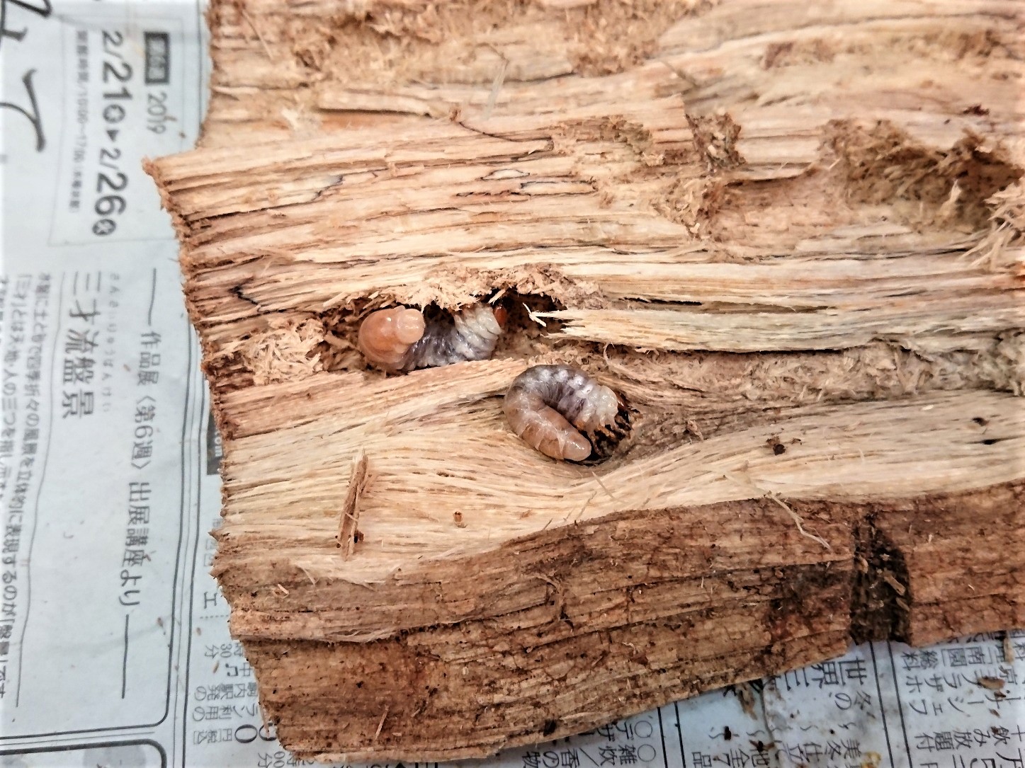 材の下にいる幼虫、材の中にいる幼虫がいました!