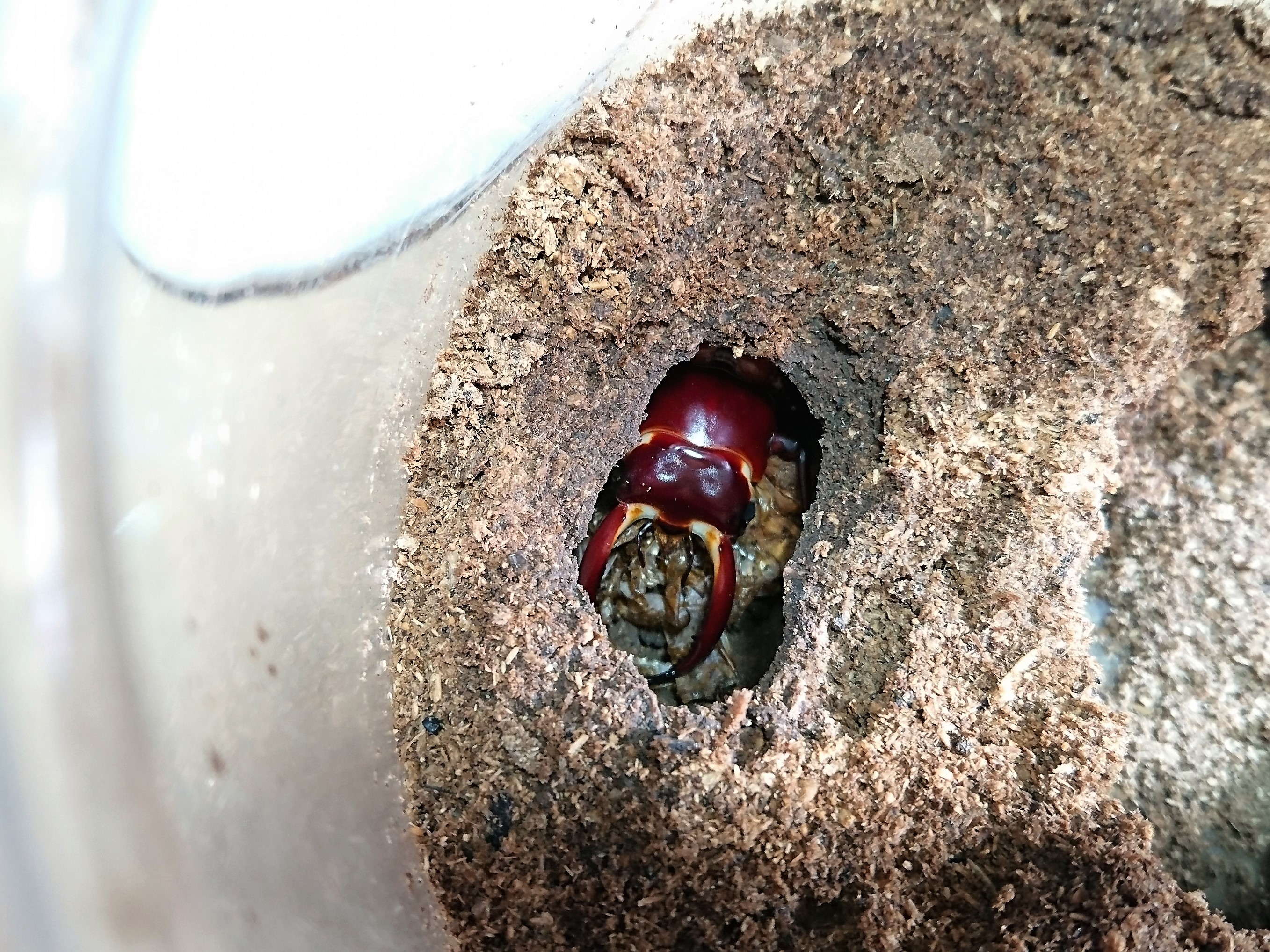 意外に頭数が出てきて、ストックしてるボトルが無くなったから産卵用に詰めておいたカワラ菌糸に4頭ほど突っ込んでるのがありました。