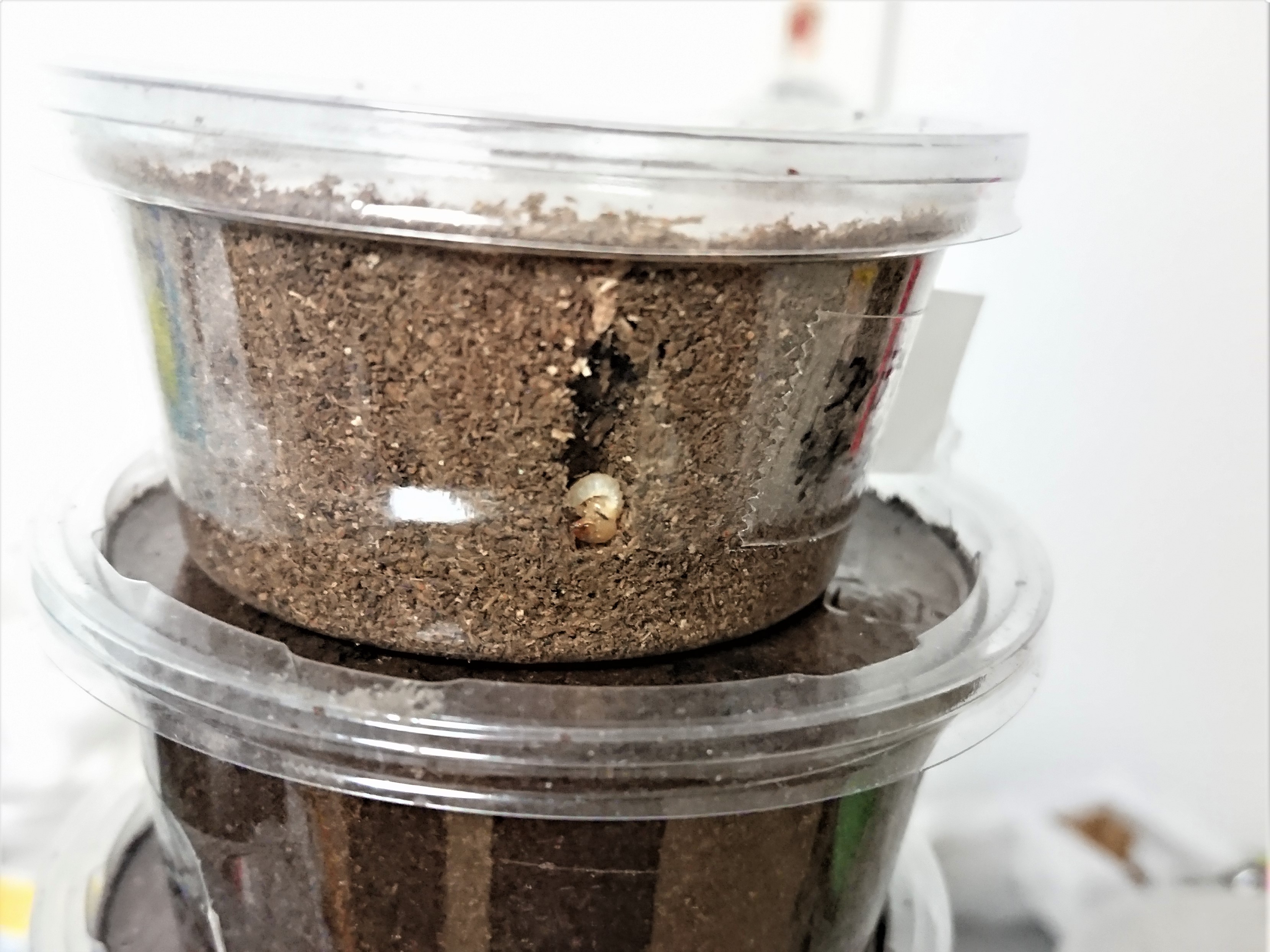 孵化からだいたい1年経過してる幼虫と、半年程度経過してる幼虫のマット交換です。