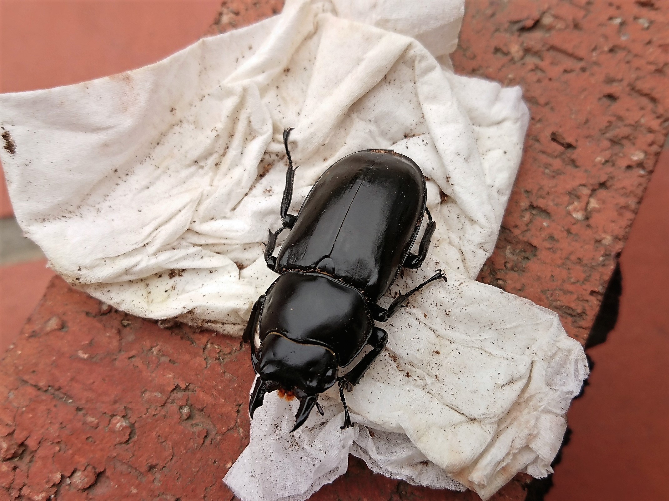 クワガタとは関係ないけど、飼育してるハムスターがケージ清掃中に居眠りしたようなので思わず撮ってしまいました。
