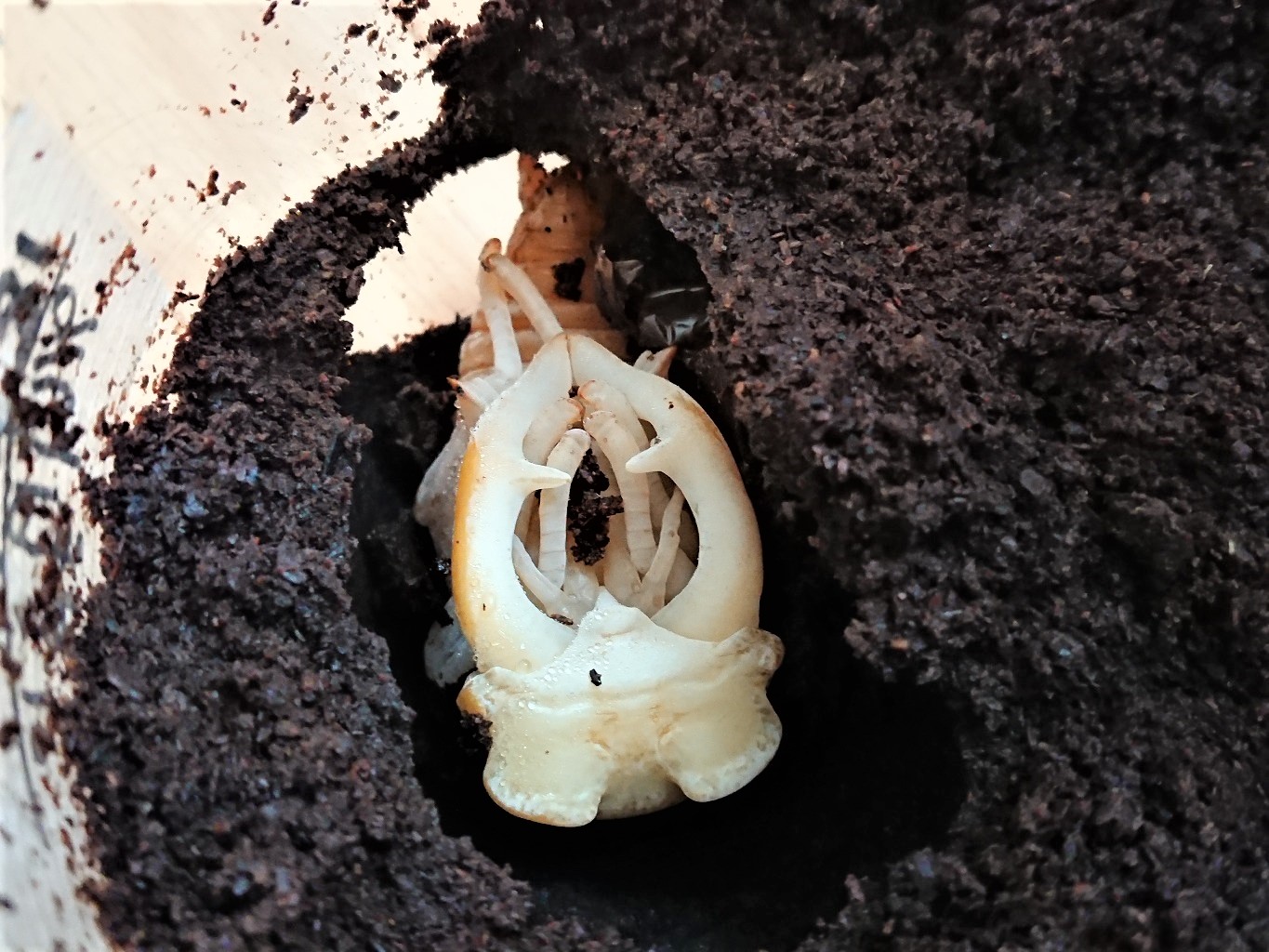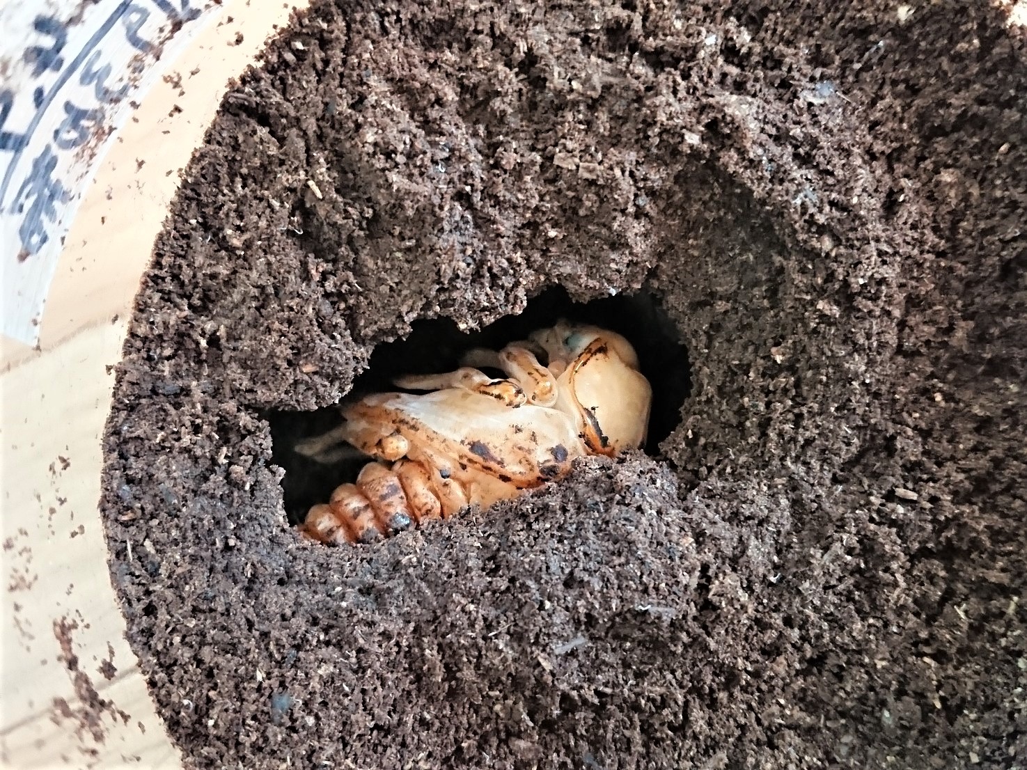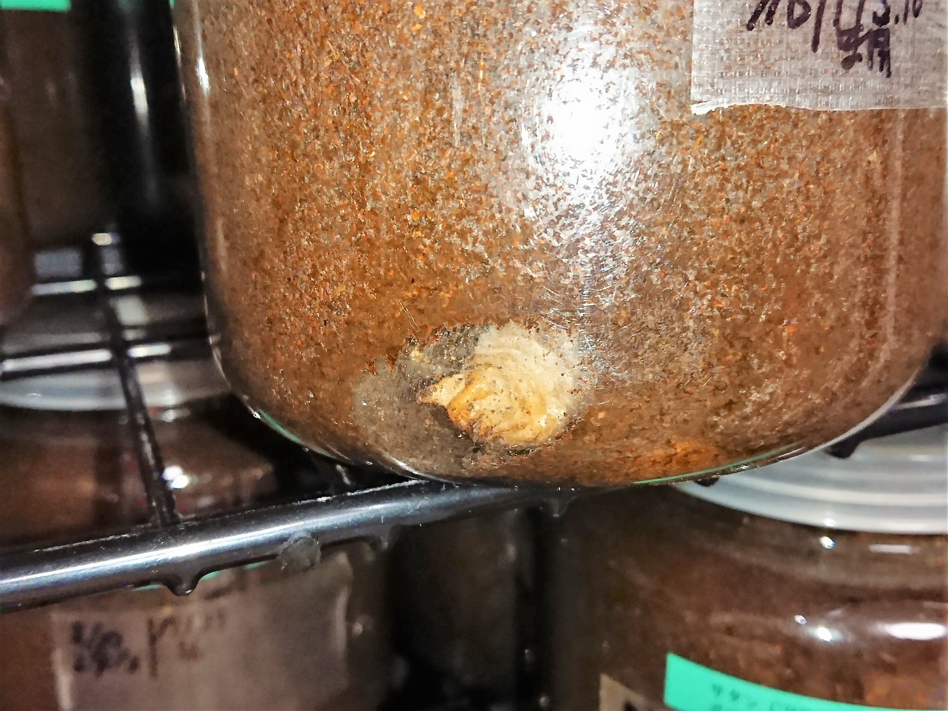 それまでクワガタ飼育してる中でもスマートなタイプのクワガタだったので、幼虫もそんなにでかくはならない感じでしたが、このオウゴンオニクワガタの幼虫が3令になった姿を初めて見た時はビックリした覚えがあります。