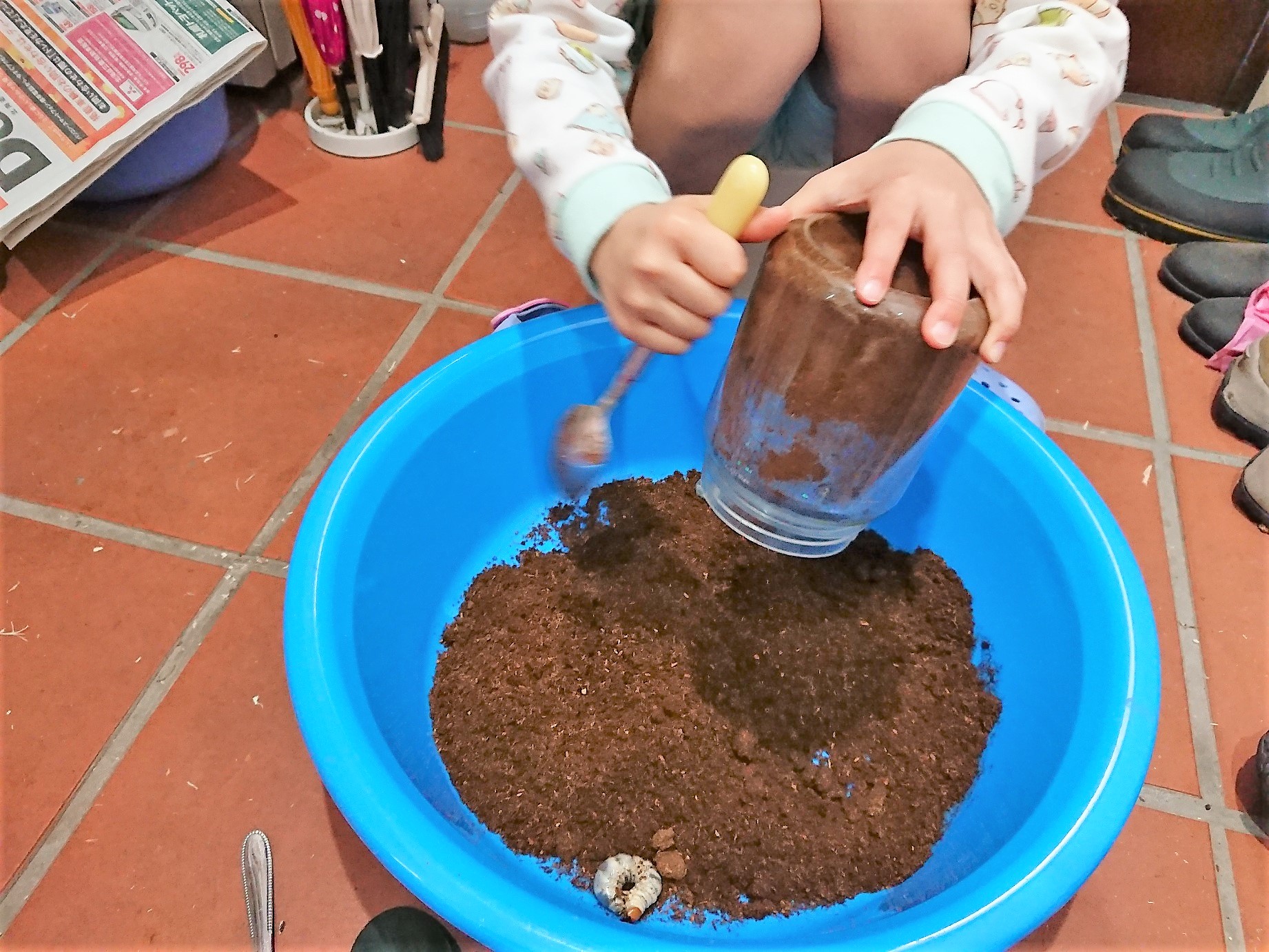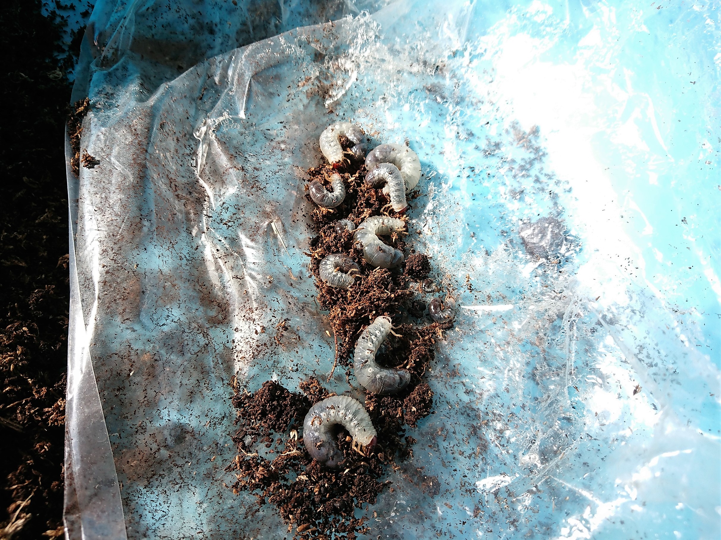 ひっくり返してみての結果は、ある程度成長した幼虫がいました~