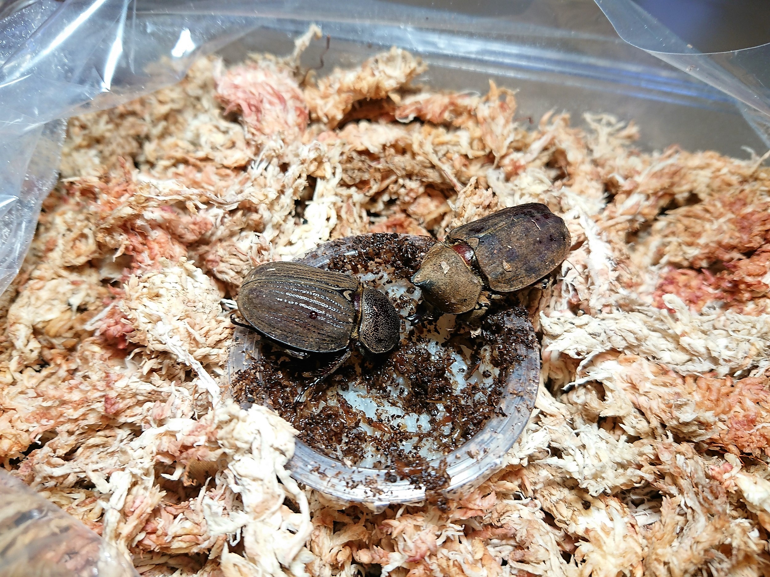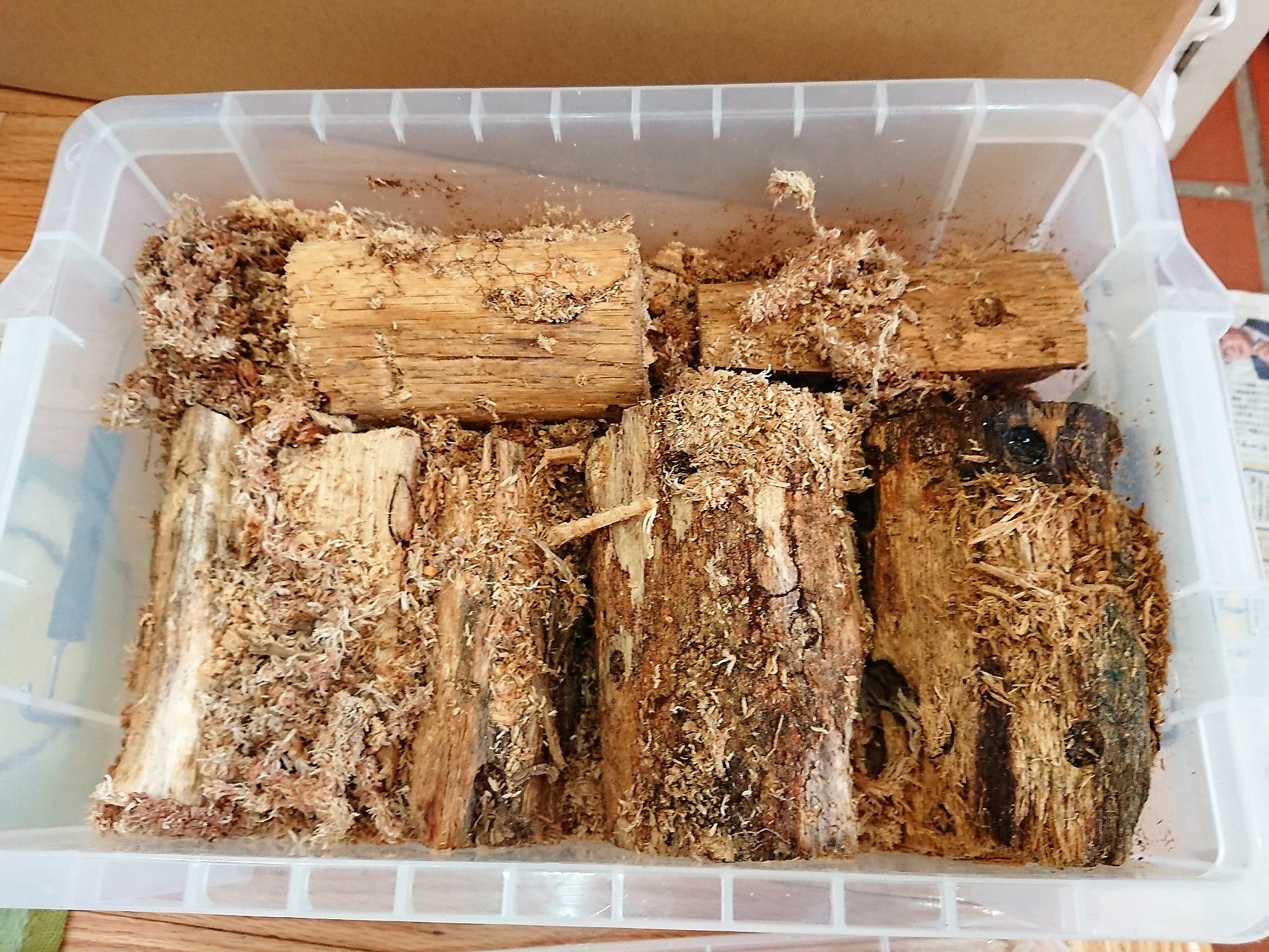 羽化してカワラ菌糸の蛹室で休眠していたところですが、だいぶ劣化して崩れてきてるし、個体も掘り進んでるようだから取り出して容器を変えようと思いました。