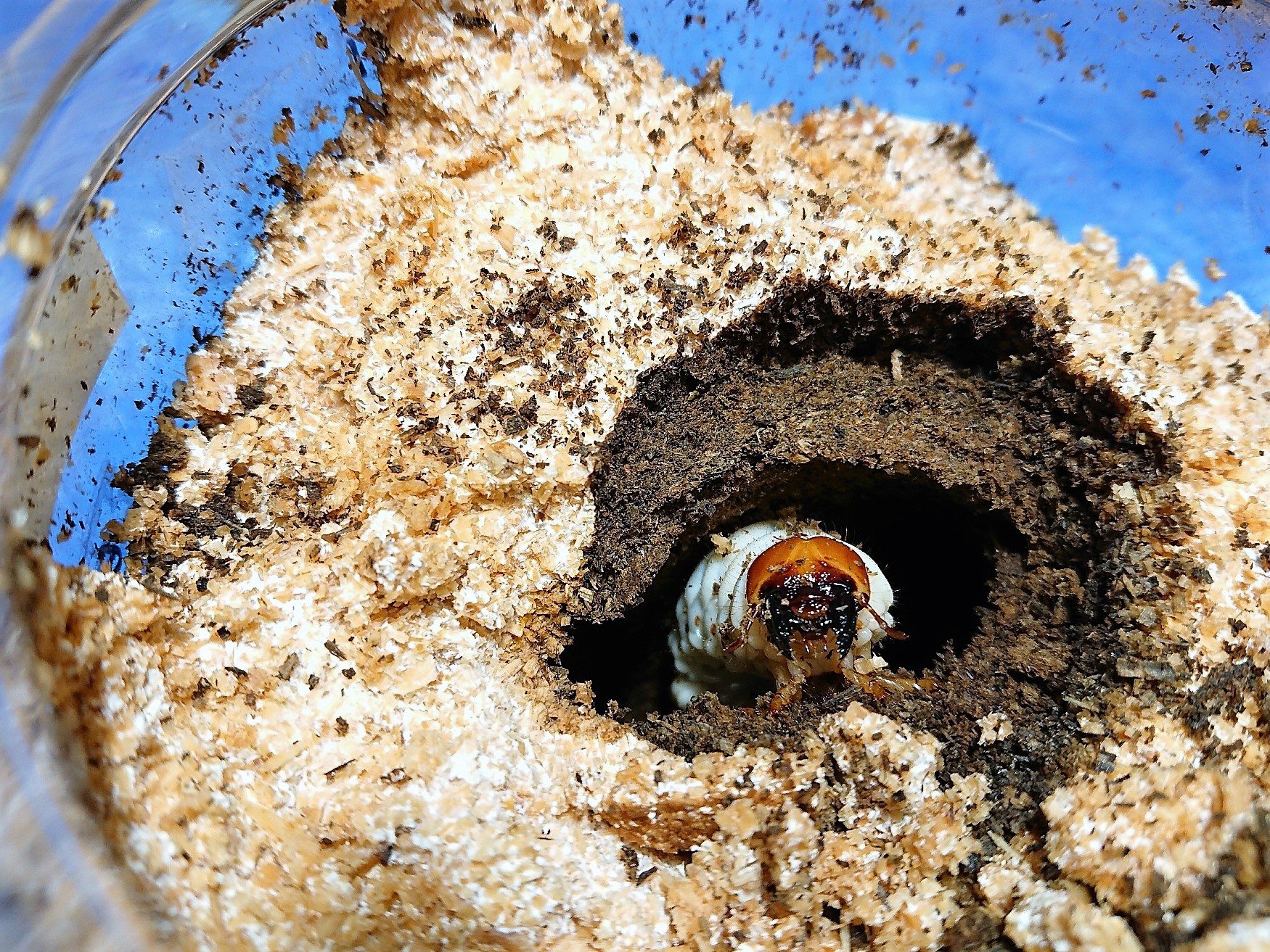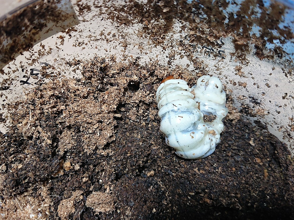なんだかんだと焦っても仕方のない生き物飼育ですが、やっとバミノルム幼虫が蛹になってきました。