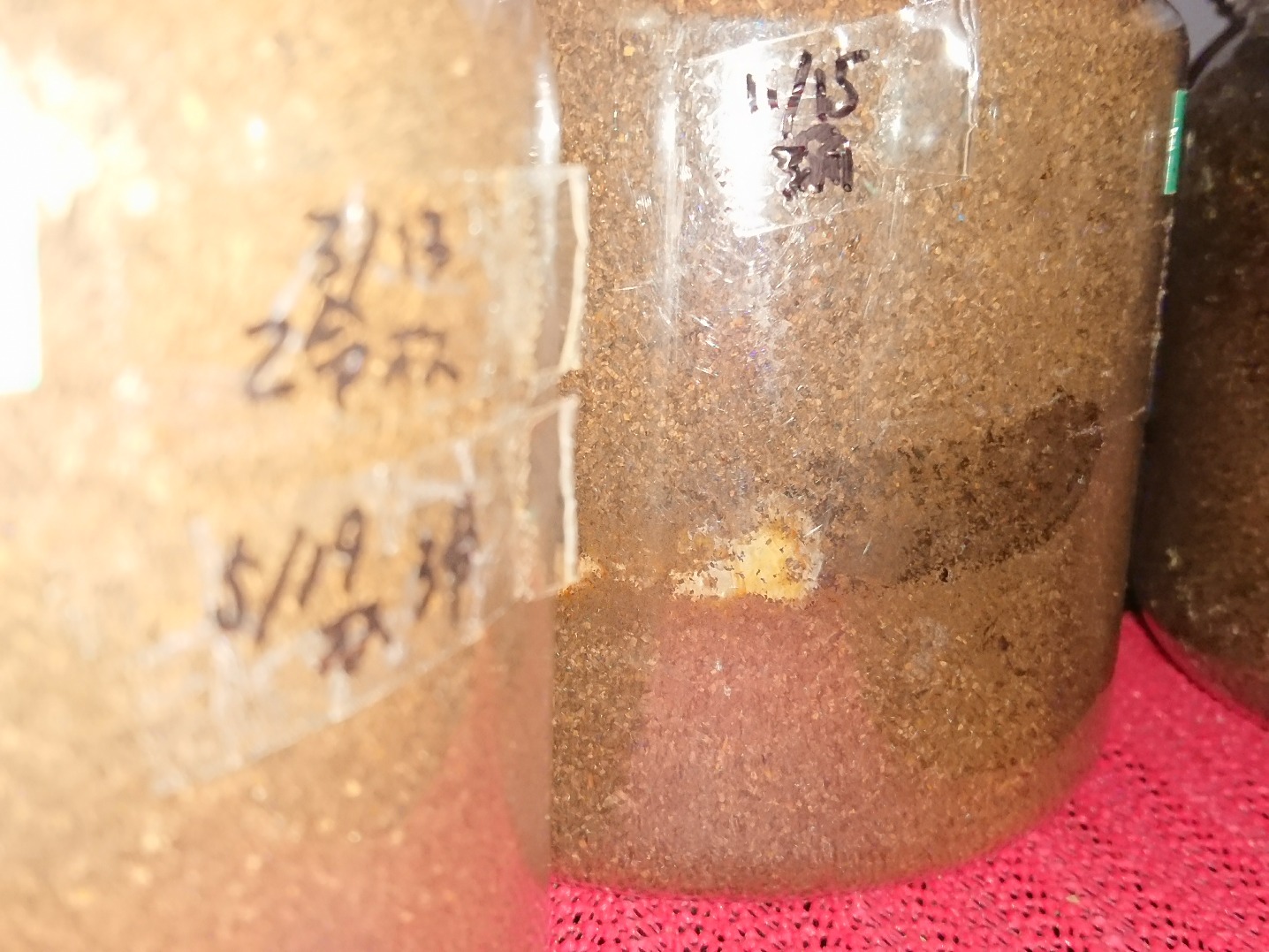 ↓ 他のボトルも菌糸のやつはけっこうオガが黒くなってるのが多かったです。なかにはマット飼育してるボトルもありますが^^