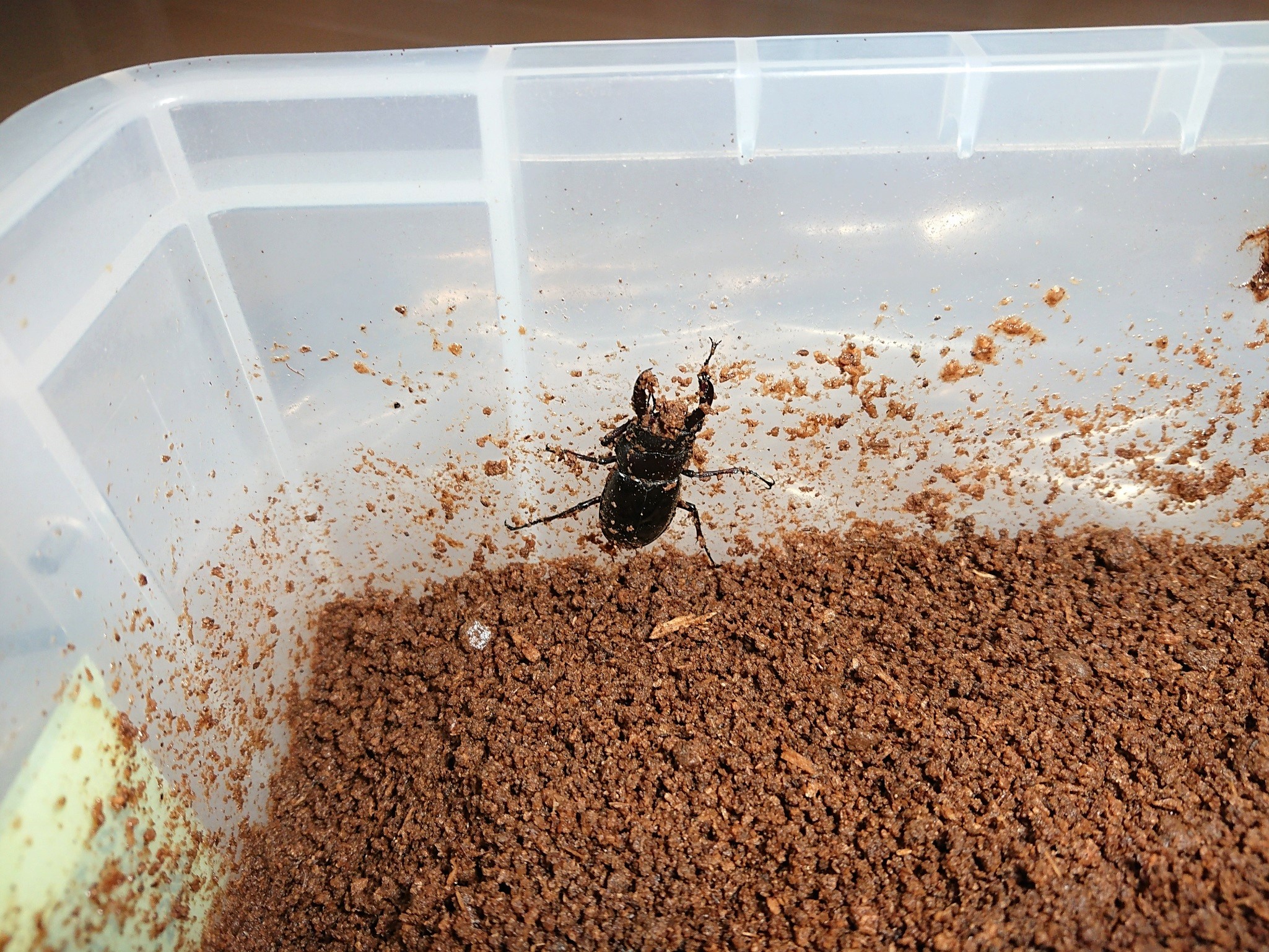 シカクワガタ、フタマタクワガタの幼虫は交換時に、表面に上がってくる幼虫をよくみかけるので・・・あまり交換作業はしたくないんですけどね。