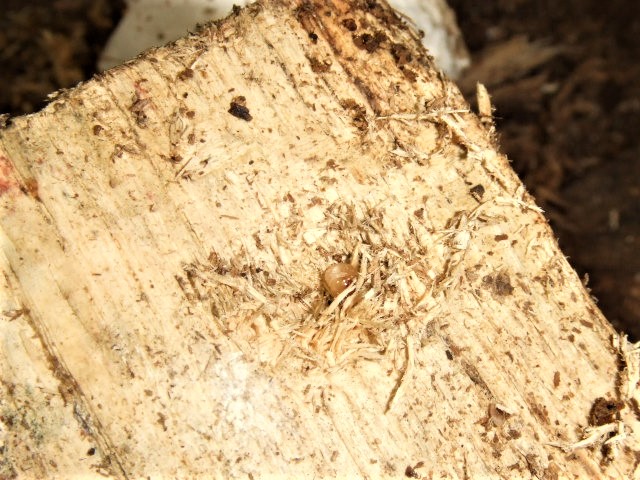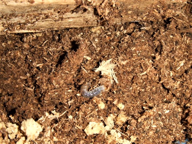 あらまぁ、材の外に幼虫がいくつかおりましたよ♪
