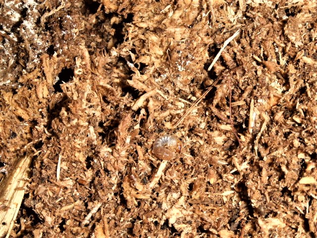 あまり揺らさないように慎重に上部のマットをかき出してってみると、しっかりと蛹の姿を見ることができました♪
