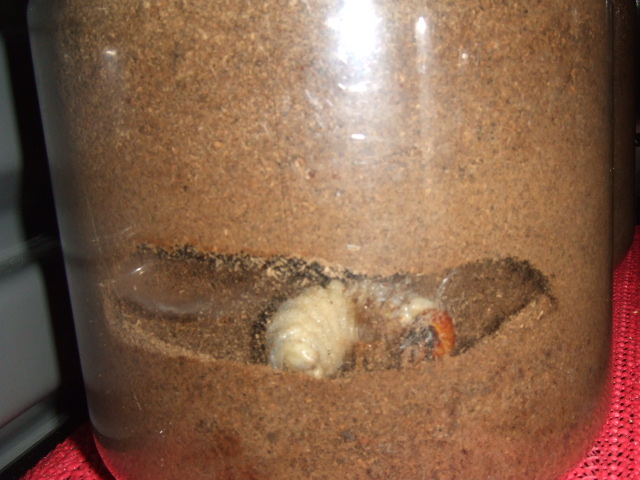 残っているメスの幼虫も現在は蛹室らしき空洞を造りつつあります。